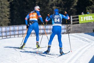 En para ski nordique, le guidage est une présence continue. Florian ouvre la piste, parle sans interruption, crée un fil sonore qui structure la course. « Son premier repère, c’est le son », explique-t-il. Alors il parle, en rythme, presque sans silence : « Je fais des “là, là, là” tout le long de la piste. » Ce flux permanent n’est pas un simple accompagnement : il donne le tempo, sécurise l’effort, permet à l’athlète de s’engager pleinement. À cette voix, Florian ajoute des indications précises, presque chirurgicales : « J’indique les passages critiques : les virages, quand ça monte, quand ça relance, quand ça descend. » Et dans une discipline d’endurance, le guidage ne se limite pas au relief : il devient stratégique. « Où sont les adversaires, qui veut doubler, à quel moment il faut gérer… » Autant de décisions prises en temps réel, sans jamais casser le rythme.