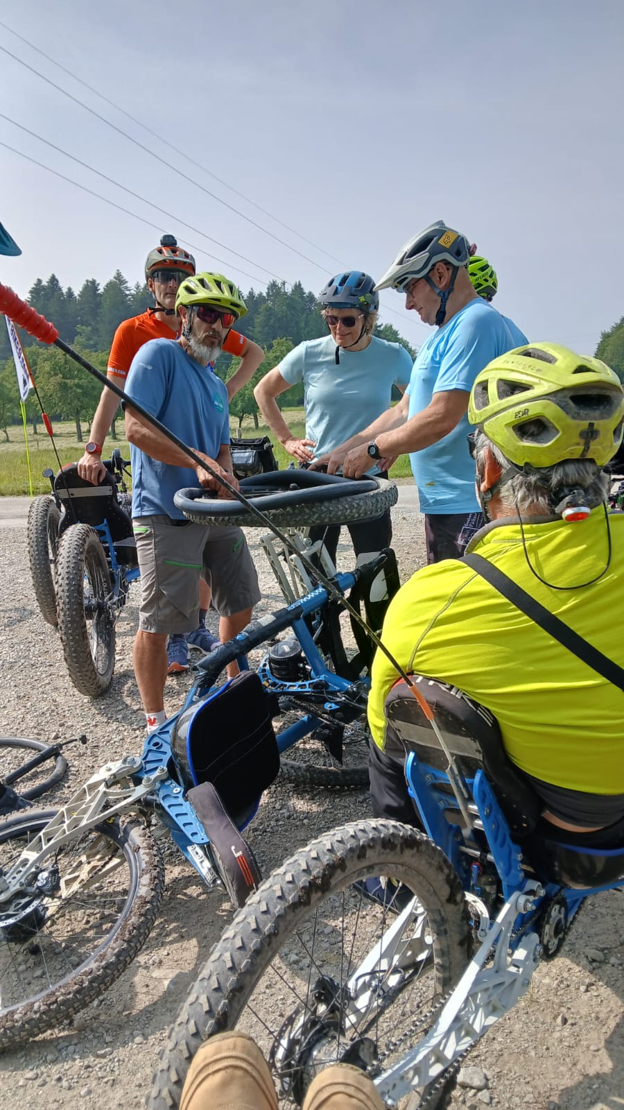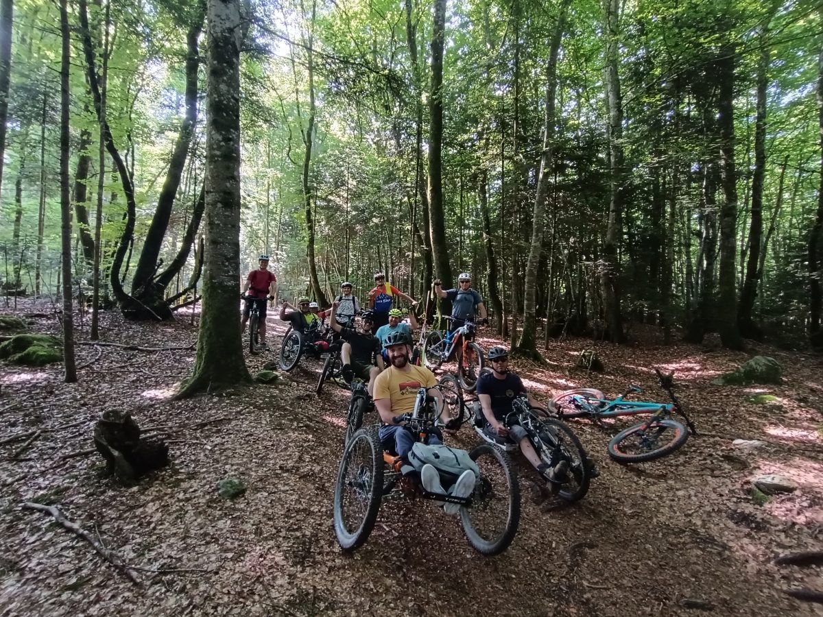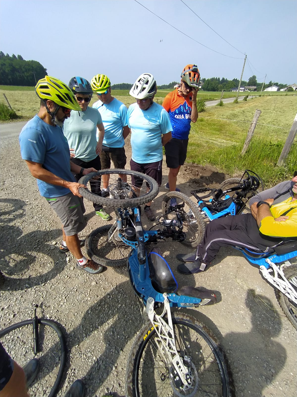 A l’issue de deux jours de formation riches sur Larringes, Saint-Paul en Chablais et Bernex, au centre Le Chenex et sur les pistes du plateau de Gavot, les accompagnateur.trices ont pris en main les cyclistes inscrits sur le stage d’initiation organisé conjointement par l’association Access Mont Blanc et Handiventure Léman. A noter la participation d’un couple bien motivé qui nous venait spécifiquement de Normandie pour l’occasion !
