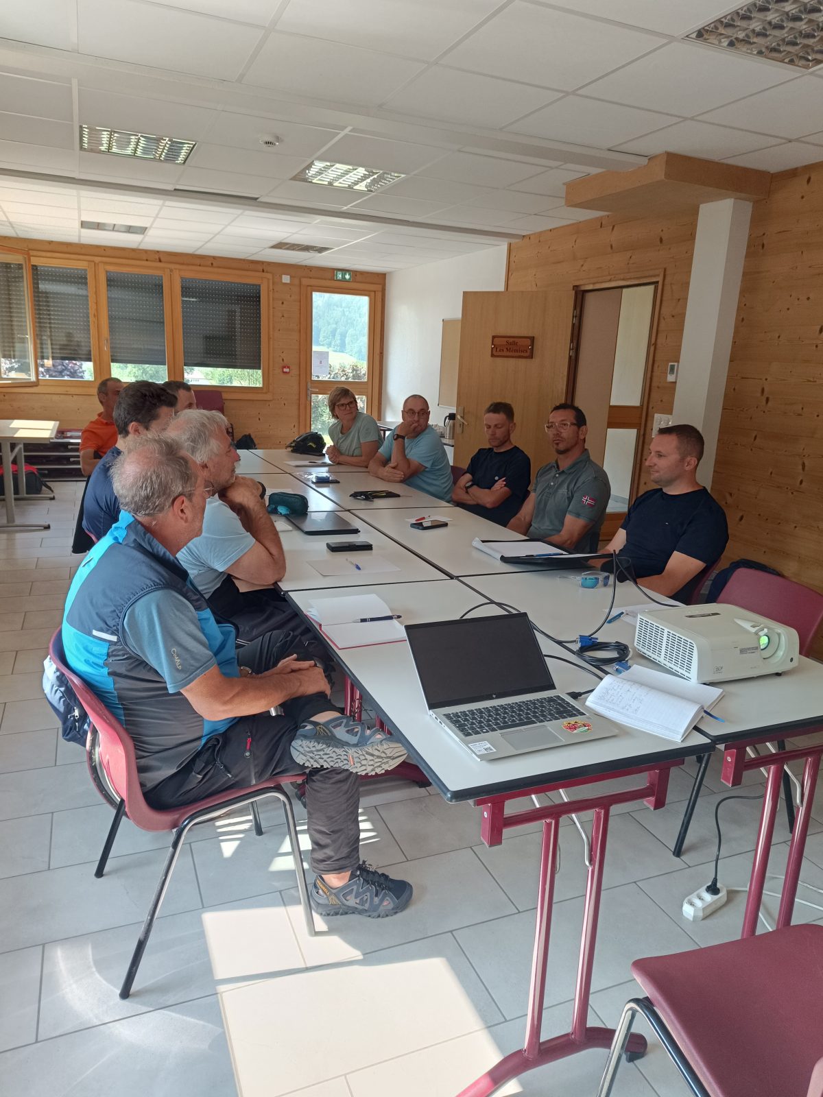 Faisant la part belle aux échanges de pratique, retour d’expérience, le formation s’est orientée sur les aspects pratico-pratique de l’activité afin que les accompagnateur.trices situent leur rôles et mission, facilite les installations, calage ainsi que le cheminement en sécurité. Sur nos 10 participants: