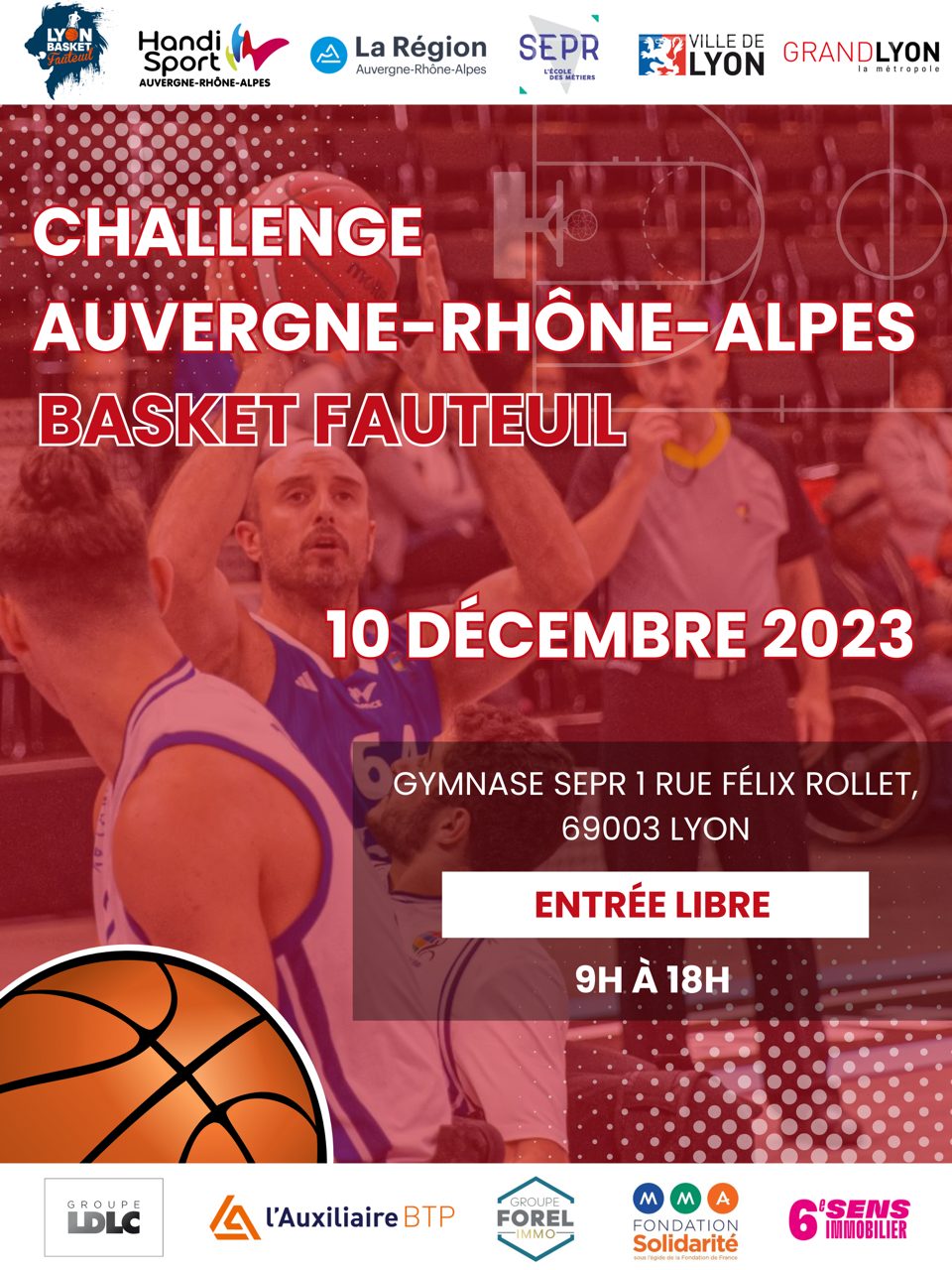 Le Challenge AURA de basket fauteuil aura lieu le dimanche 10 décembre à Lyon et vous sera proposé par la Ligue Auvergne-Rhône-Alpes ! Il s’adresse aux équipes non-engagées dans un championnat national.